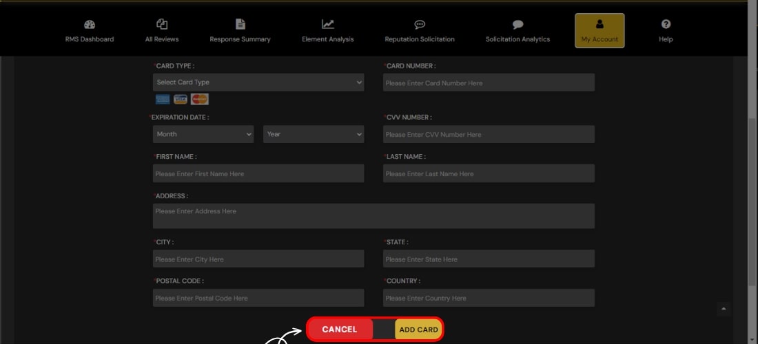 6. To add a payment card, enter your card information and click 'Add Card' to complete the process seamlessly.